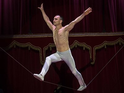 Roberto Sullacordo balanciert gekonnt auf dem schwingenden Schlappseil.