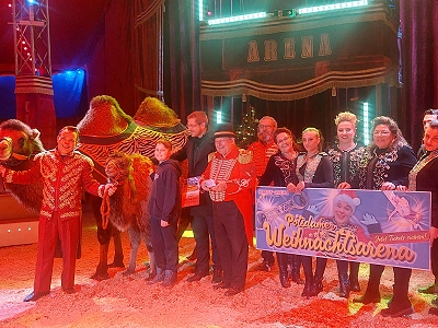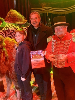 Kameltaufe mit Oberbürgermeister Maik Schubert am 15. Dezember 2022 mit dem jugendlichen Preisträger des ausgewählten Namensvorschlags.